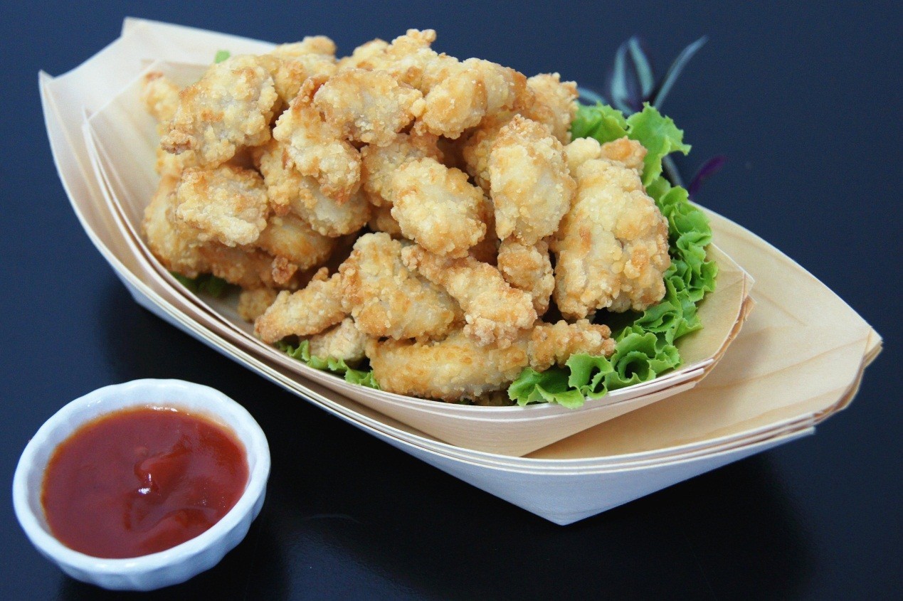 臺灣特色小吃,表面顆粒感外觀,外酥里嫩,顏色金黃,適用于工廠、快餐連鎖店內使用。
